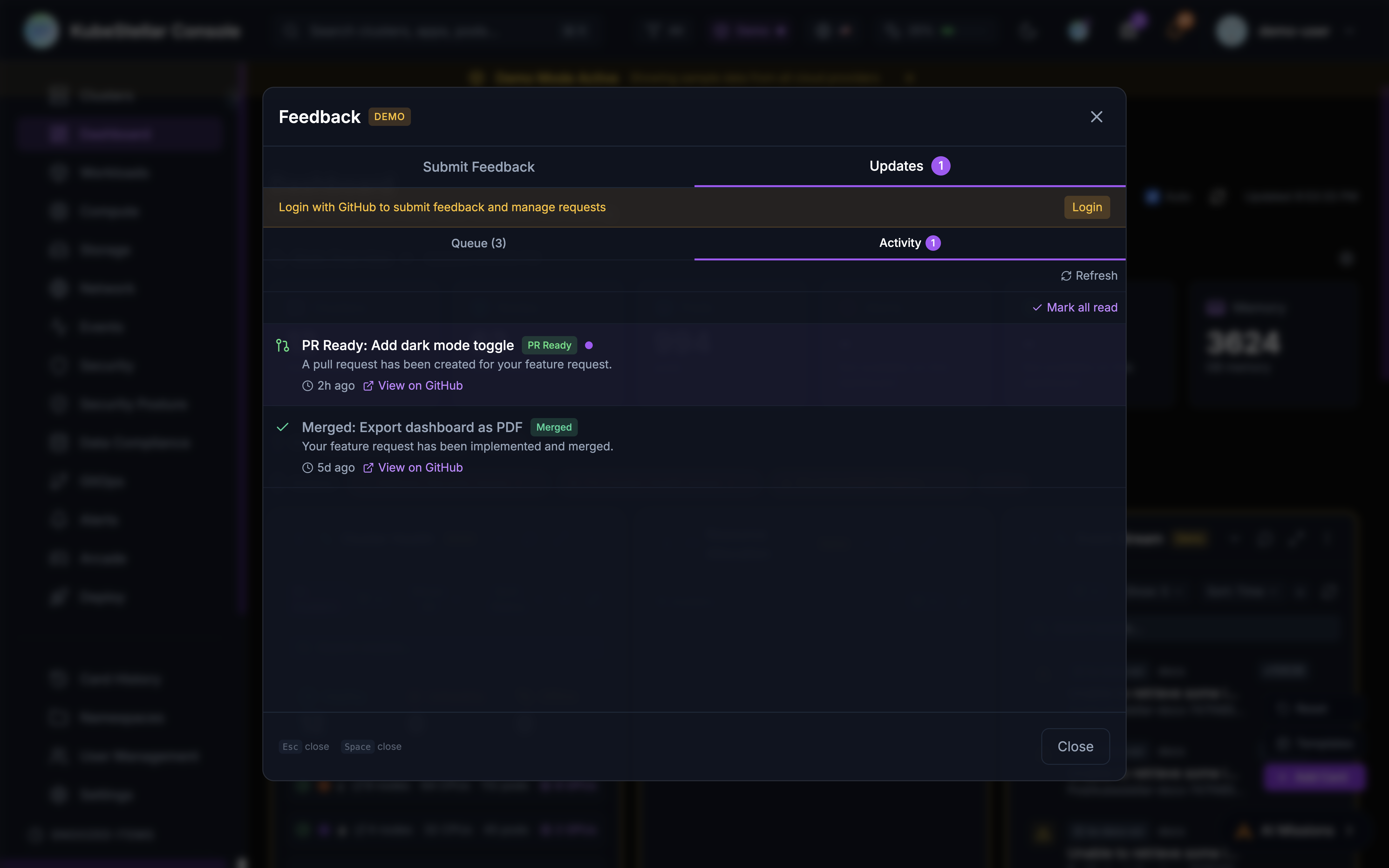 The KubeStellar Console includes a community rewards system to encourage engagement and contributions.